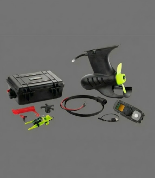 Doświadcz zalet tej małej, kompaktowej obudowy, lekkiej jak piórko i łatwej do umieszczenia za torbą na pływadełku. System jest wyposażony w silnik i pilot zdalnego sterowania.